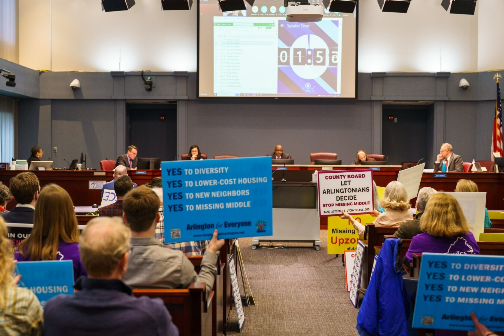 The Board voted unanimously to approve the policy, which allows small multifamily buildings in single-family neighborhoods. But Arlingtonians were dramatically split, with many older established homeowners in opposition — and a younger, more diverse group of renters supporting the change.