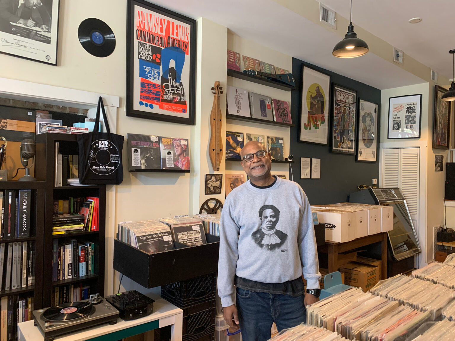 If there is a central figure responsible for bringing the Home Rule Music Festival to fruition, it is Charvis Campbell, co-owner of HR Records and executive director of the Home Rule foundation. Located in D.C.’s Brightwood Park neighborhood, Campbell’s business got a splash of attention last month when Vice President Kamala Harris stopped by the store to dig for vinyl, leaving with classic albums by Charles Mingus, Roy Ayers, and others.