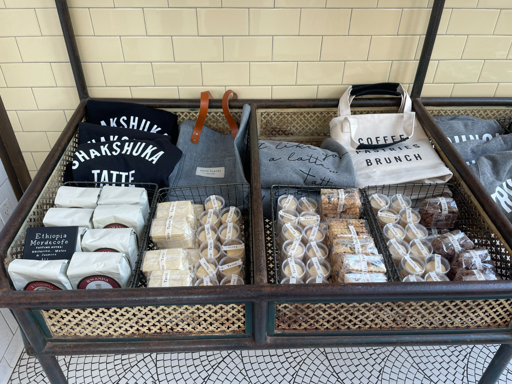 9:53 a.m.: I’m sitting at a table outside with my cup of muesli and latte ($13.75 before tip), watching people in athleisure come and go with their takeout coffees and croissants. One woman walks up to greet one of her tablemates sitting outside, and as she goes in for a hug, chirps “you look so unbothered!” And that’s sort of the vibe of this Tatte. Everyone looks like they might go shopping, or golfing, or to a fitness class at some point today, but they’re in no rush.
