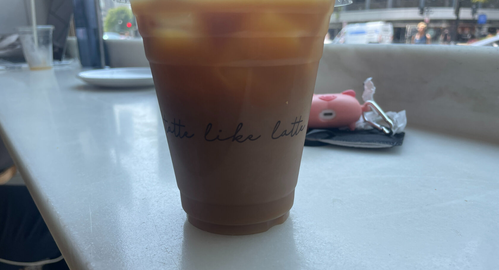 I decide I’ll get a cold brew, which I’m aware is a dumb decision even as the words are leaving my mouth to order, but it at least maintains some thematic continuity on my very dumb decision-making day. (See also: slight hangover, accidental trip to Pentagon, the whole concept of this trip.) I notice my coffee cup has “Tatte Like Latte” written in a cutesy script, as if the cup itself is winking at me.