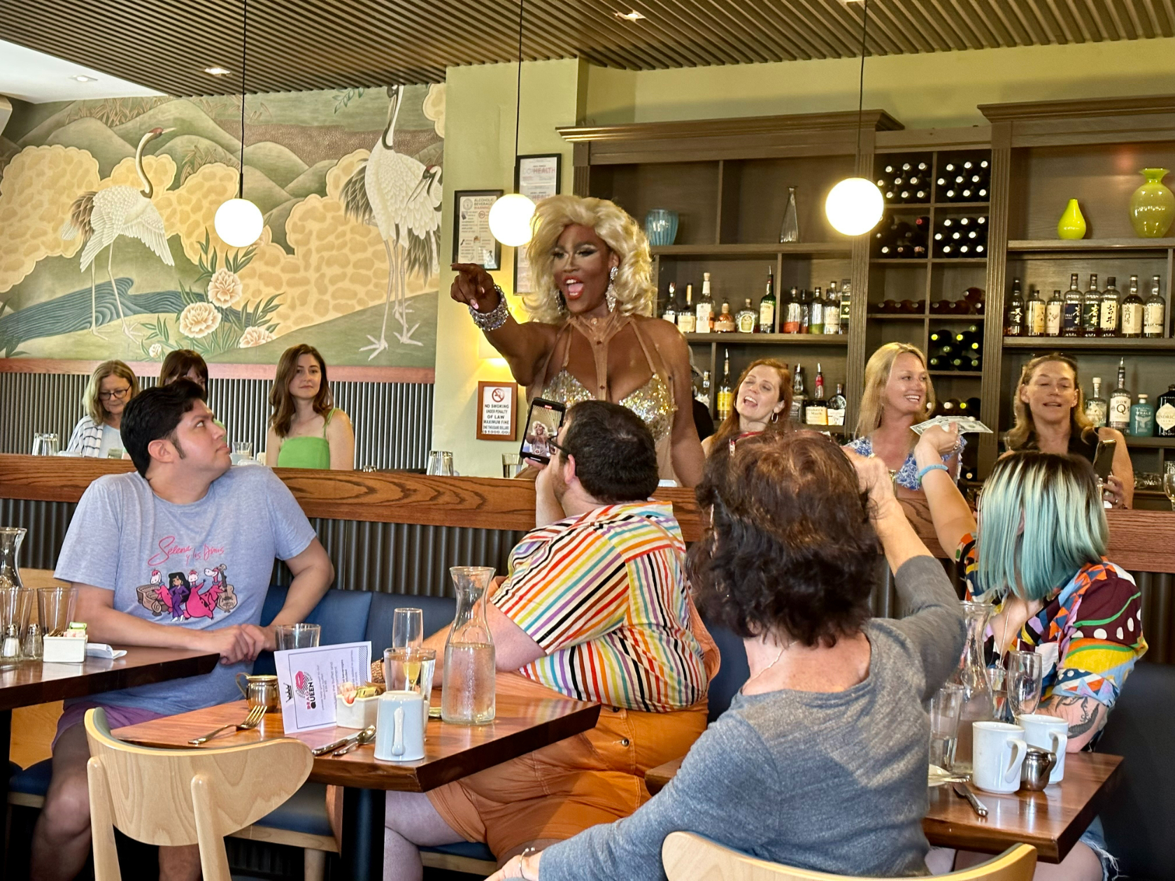 For Azali, who identifies as straight, to host a drag brunch at his restaurant was groundbreaking. The shows weren’t well attended at first because their start coincided with the AIDS epidemic, a time when discrimination against the LGBTQ community was rampant. But the restaurant stayed with it, and eventually drag brunch became a great success, says Azali, which he credits to the performers, whose high energy is contagious; and location, which is on the second floor and is more private.