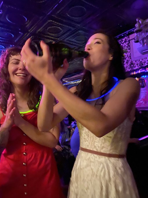 She recalls the bartenders handing her a bottle of champagne, eating heaps of fried food at the bar from Manny and Olga’s nextdoor, and dancing to a DJ set until the Glass closed. She even has a stain on her wedding dress that she’s now hesitant to remove because it serves as a reminder of the best night of her life, she says.