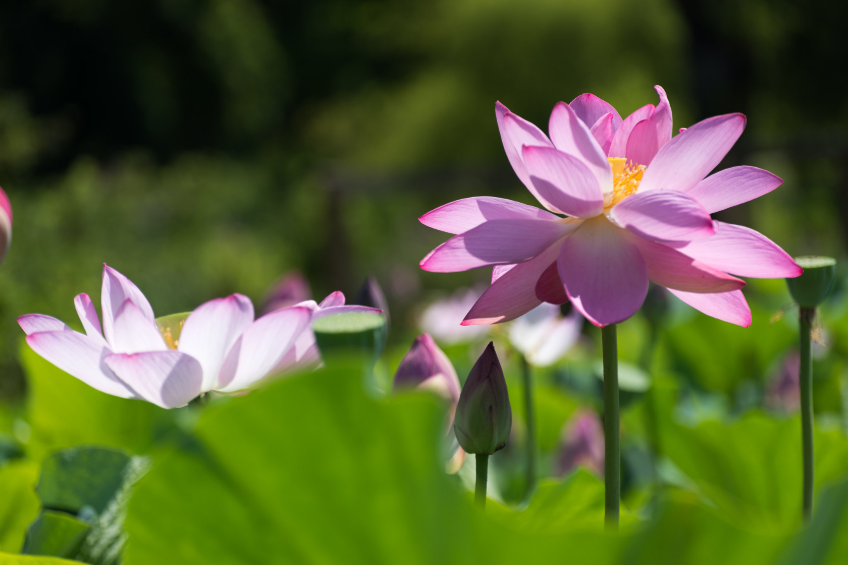 A couple standing in awe at the pink blooms at the Lotus and Water Lily Festival:
