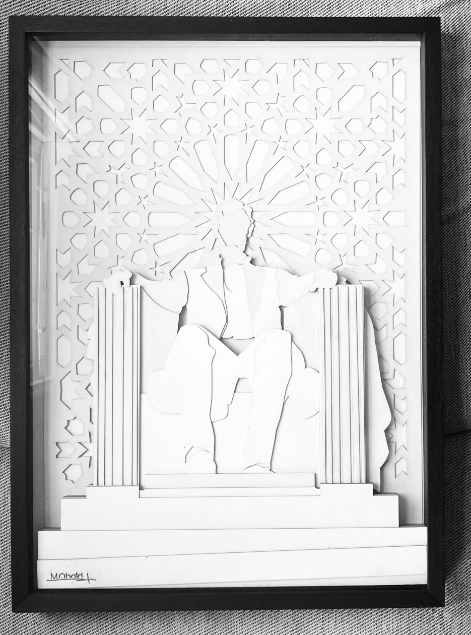 Mohammad Obaid is based between D.C. and his hometown, Amman, Jordan. After studying graphic design and exploring forms of artistic expression such as calligraphy and street art, he moved towards specializing in layered paper art. Influenced by his Syrian ancestry, Obaid says his work is a tribute to both the heritage and the vibrant youth of the Middle East, but also reflects his own experience living at the crossroads of continents and cultures.