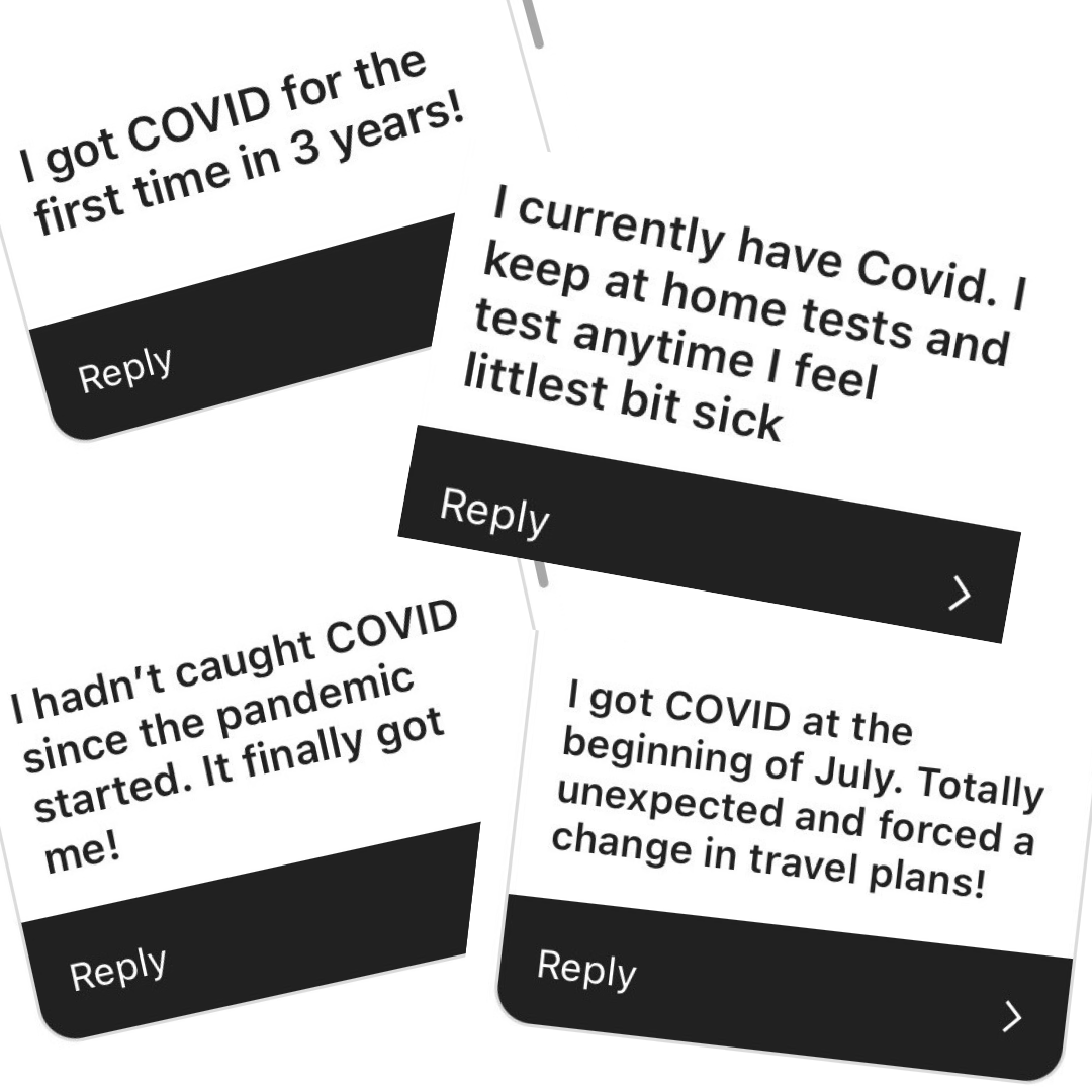 We asked DCist/WAMU readers how they were managing the current uptick, and responses ranged – underscoring the varying degrees to which people do or do not think to protect against COVID anymore. One person said they “had no idea” transmission was up. Several people said they had COVID right now – and many for the first time. One mentioned a work conference that became a superspreader event, while another mentioned a close call at their child’s daycare.