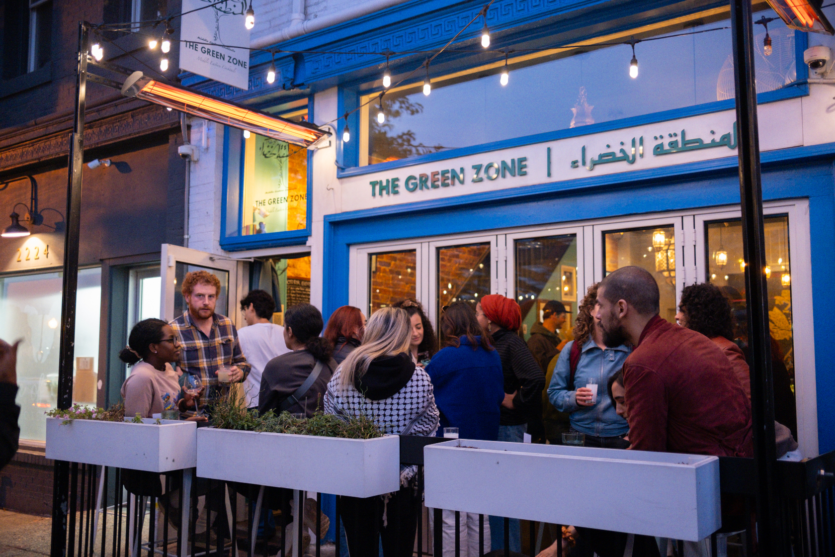 Alicia Talamas waits just outside of the Green Zone, a Middle Eastern bar in the heart of Adams Morgan. The air is cold but she and a friend are early enough to get ahead of the crowd that stretches down the block of 18th Street NW. Like many others, she says she came for the comfort of Palestinian food and to support humanitarian aid in Gaza.