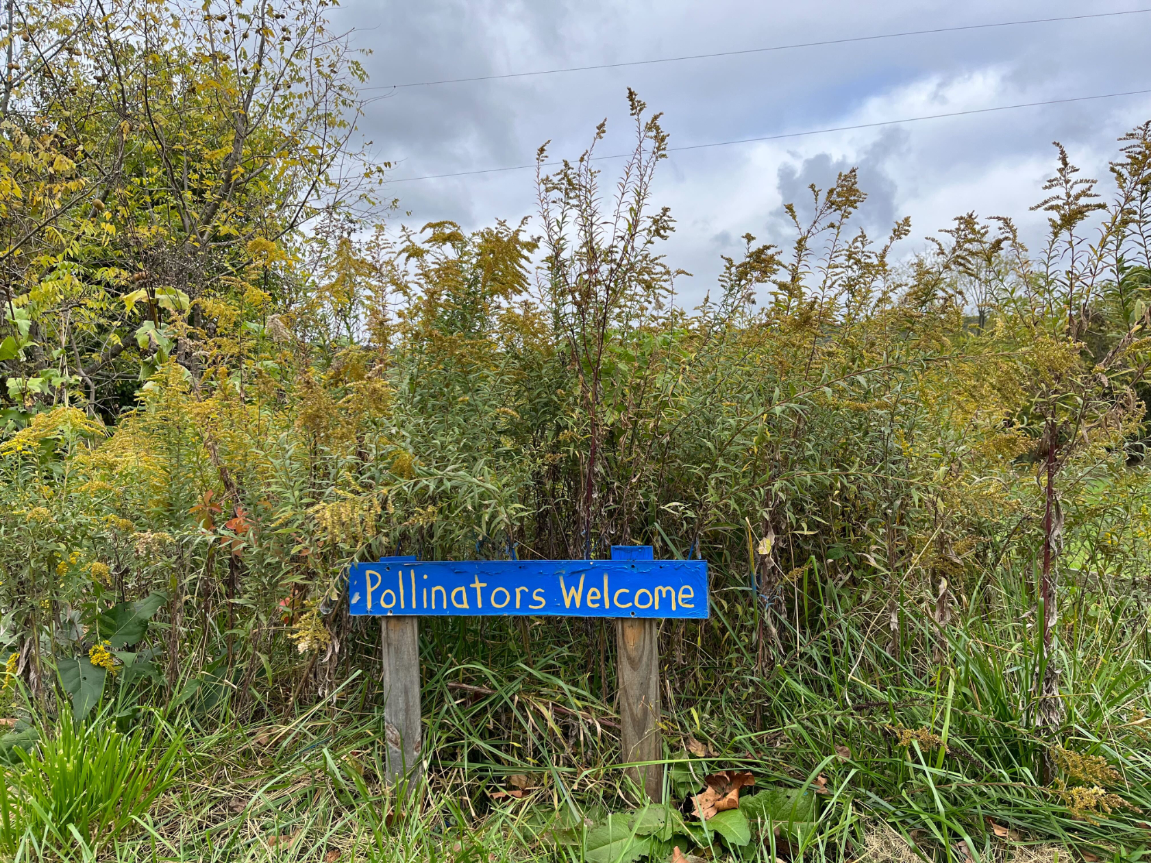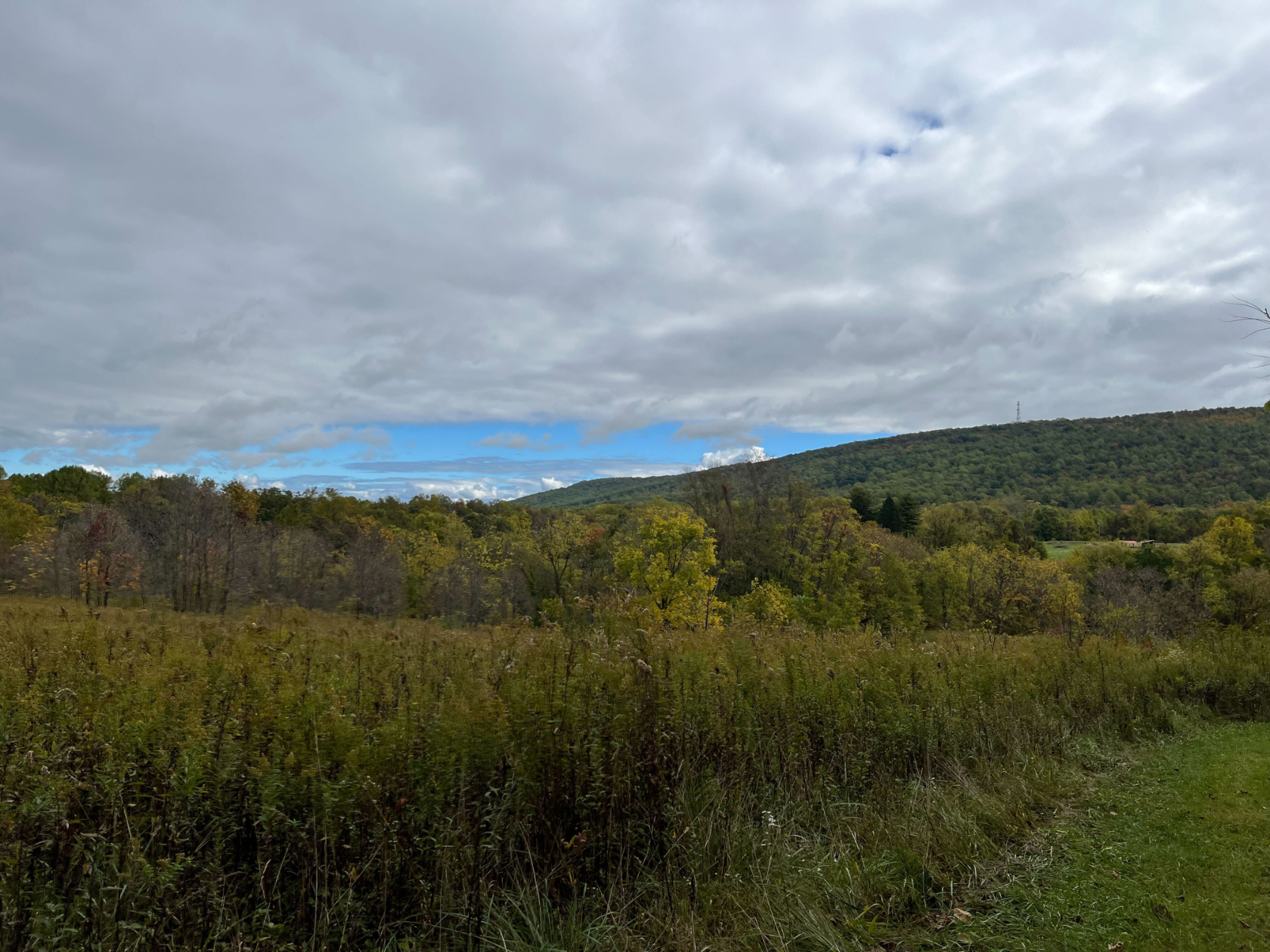 Towards the end of the hike, we walk out of the woods and into a meadow — more former farmland, Bowman says. Now, it’s got bluebird nesting boxes, a profusion of goldenrod, and an expansive view up to Short Hill Mountain and the Blue Ridge, which sandwich the Between the Hills valley. There’s some blue sky peeking through the clouds, promising a sunny fall afternoon.