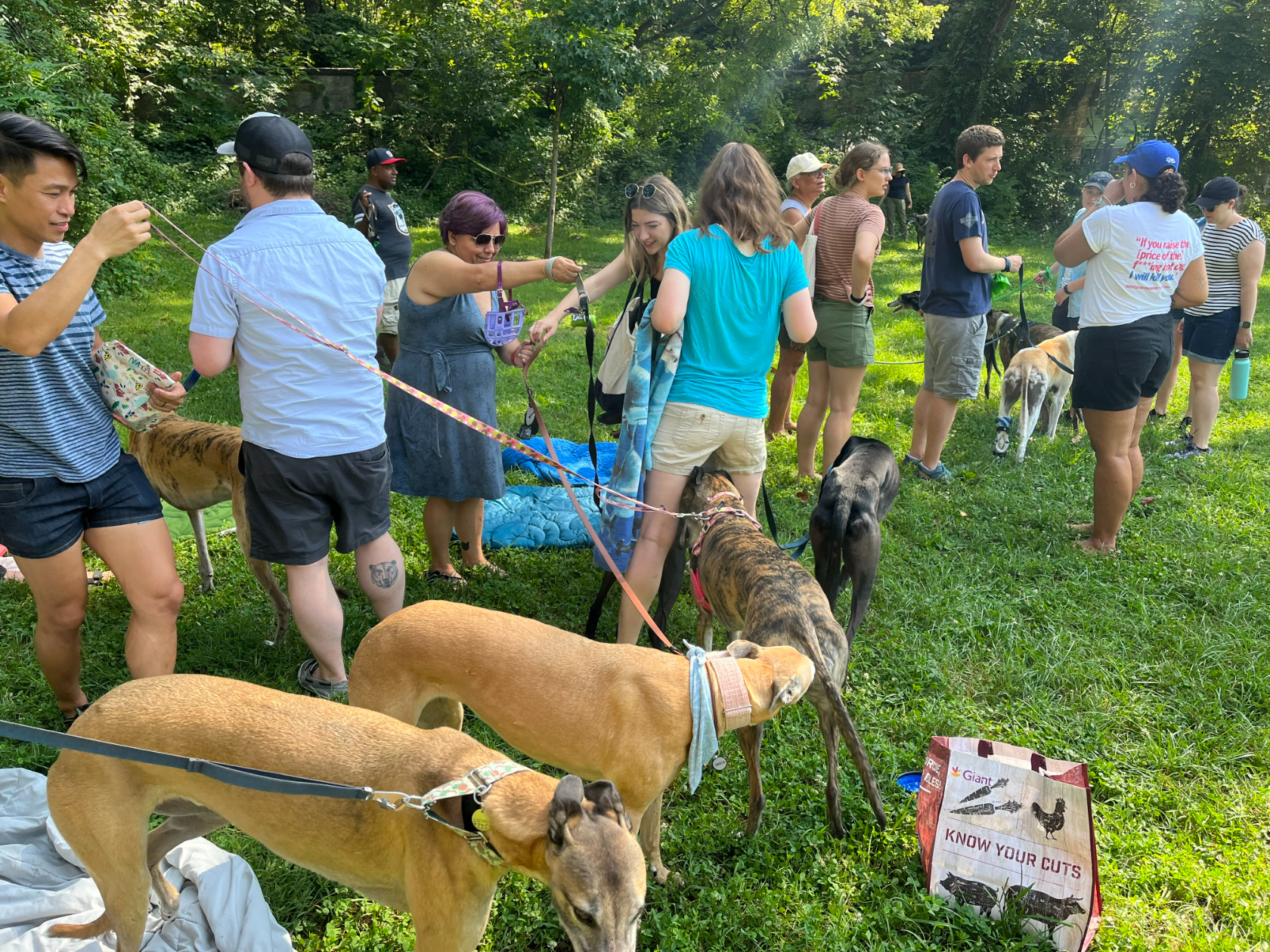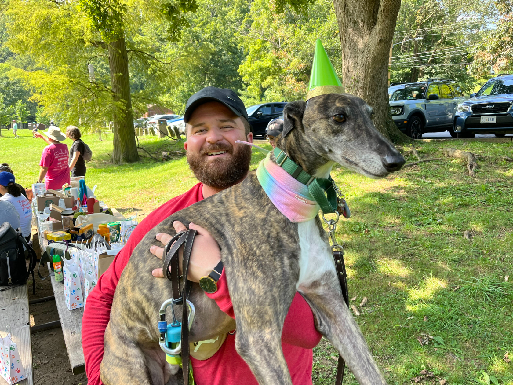 For two years in a row, I have managed to find myself in Rock Creek Park at a birthday party for four greyhounds.