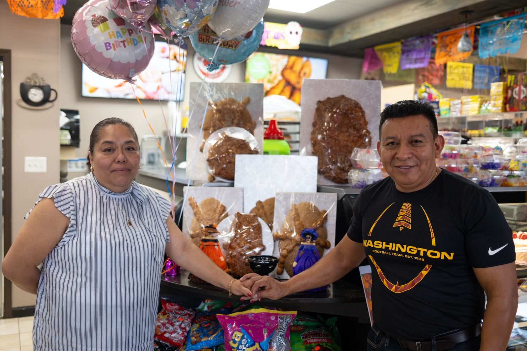 Next door at La Flor de Puebla bakery, some stop in for fresh pan de muerto. It was founded by Mario Hernandez Alcala in Passaic, New Jersey, and his family went on to open five other locations in the D.C. region – including the one in Hyattsville and another in Woodbridge, Va.