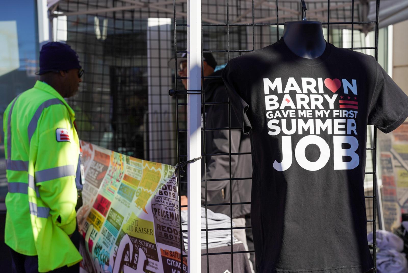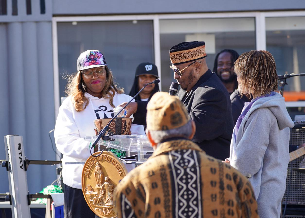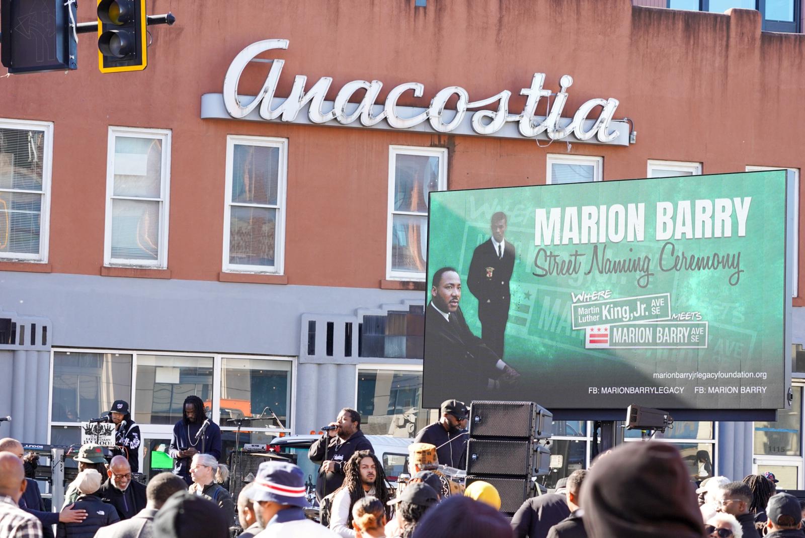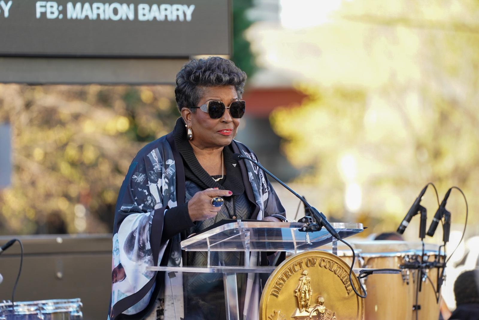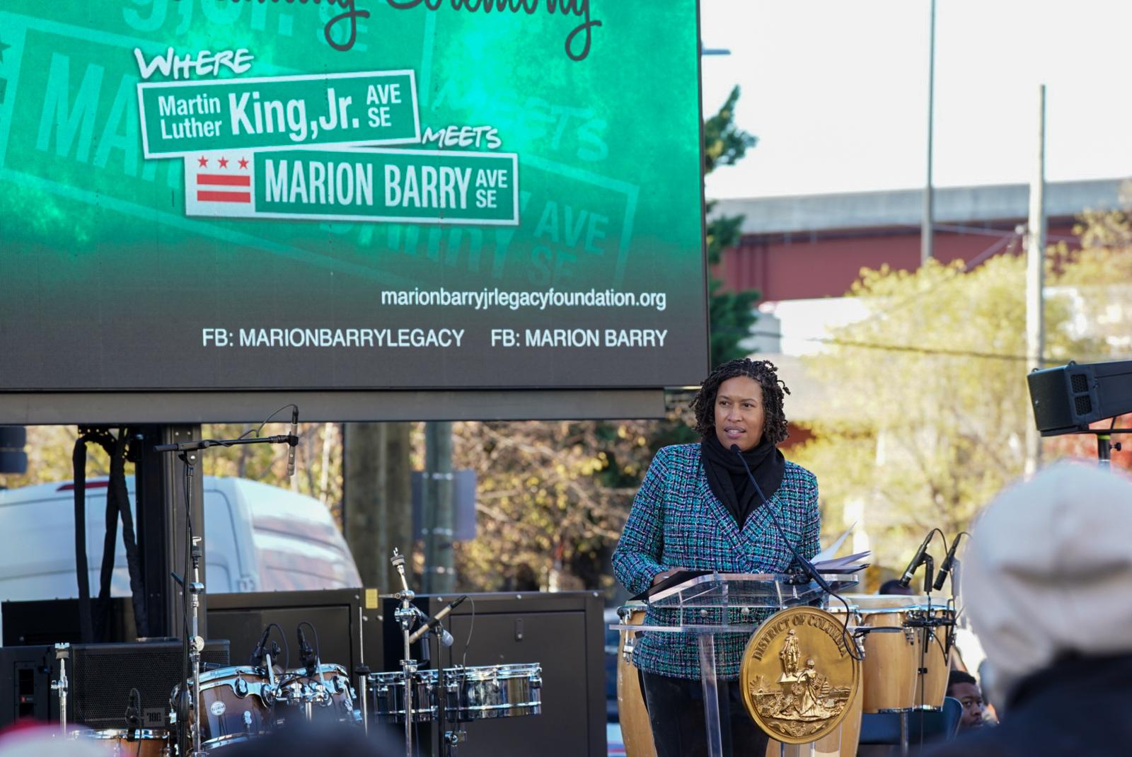Cora Masters Barry, Marion Barry’s widow, speaking at his street renaming ceremony in SE.Mike Maguire / DCistD.C. Delegate Eleanor Holmes Norton also spoke at the Street renaming ceremony.Mike Maguire / DCistMayor Bowser reminisced about her time working with Marion Barry when they both served on the D.C. Council. Barry died shortly after she was first elected mayor. She said he told her to do for Ward 8 what he hadn’t been able to do.Mike Maguire / DCistThe Metropolitan Police Department Honor Guard was present at the street renaming ceremony.Mike Maguire / DCistCharles Dark of Upper Marlboro traveled to the city for the street renaming ceremony. “This day means a lot to us, because Marion Barry meant so much to the city. I live in Upper Marlboro, but I work in the city thanks to Mayor Barry.”Mike Maguire / DCist“The street name means Marion Barry’s legacy is assured,” said Melanie Campbell, President and CEO National Coalition on Black Civic Participation. “Young people will know who he was.”Mike Maguire / DCistWard 8 resident Nakeya Gilbert (left), with her mother Katherine. “This is long overdue. He should have had a street named after him long ago. He was the best mayor we’ve ever had.”Mike Maguire / DCistSeveral councilmembers were spotted at the renaming ceremony, including D.C. Council Chairman Phil Mendelson.Mike Maguire / DCistPamela Matthews, lifelong Ward 8 resident. “Mayor Barry helped the youth, he helped the seniors. He helped all of us. This is awesome, and I couldn’t miss it.”Mike Maguire / DCistA slate of vendors set up their stalls at the street naming ceremony for Marion Barry Avenue SE.Mike Maguire / DCistRev. Willie F. Wilson, Sr., Pastor Emeritus Union Temple Baptist Church, pouring one out for Marion Barry. “There is an African proverb that says whenever you call out the name of a person who has transitioned, they will remain alive. With the renaming of this street, Marion Barry’s name will now be called out every day.”Mike Maguire / DCistWard 8 Councilmember Trayon White leads the crowd in a chant of “Barry! Barry! Barry!”Mike Maguire / DCistGo-go band E.U. played at the street naming ceremony for Marion Barry Ave SE.Mike Maguire / DCistMasters Barry onstage to dance with them as they started playing their 1998 hit “Da Butt.”Mike Maguire / DCistThe crowd viewed a video honoring Barry as they gathered for the renaming ceremony in SE.Mike Maguire / DCist