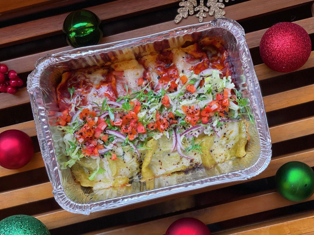 Takeout: Throughout December, Lulu’s Winegarden transforms into a holiday pop-up with festive decor, themed bingo, and spirited cocktails. At the center of all the excitement: Chef Cable Smith’s beloved Christmas enchiladas, which are stuffed with beef and cheese and smothered in red and green hatch chile sauces. Catering packages start at $30 and feed groups of two to 20. (1940 11th St. NW. Order here.)