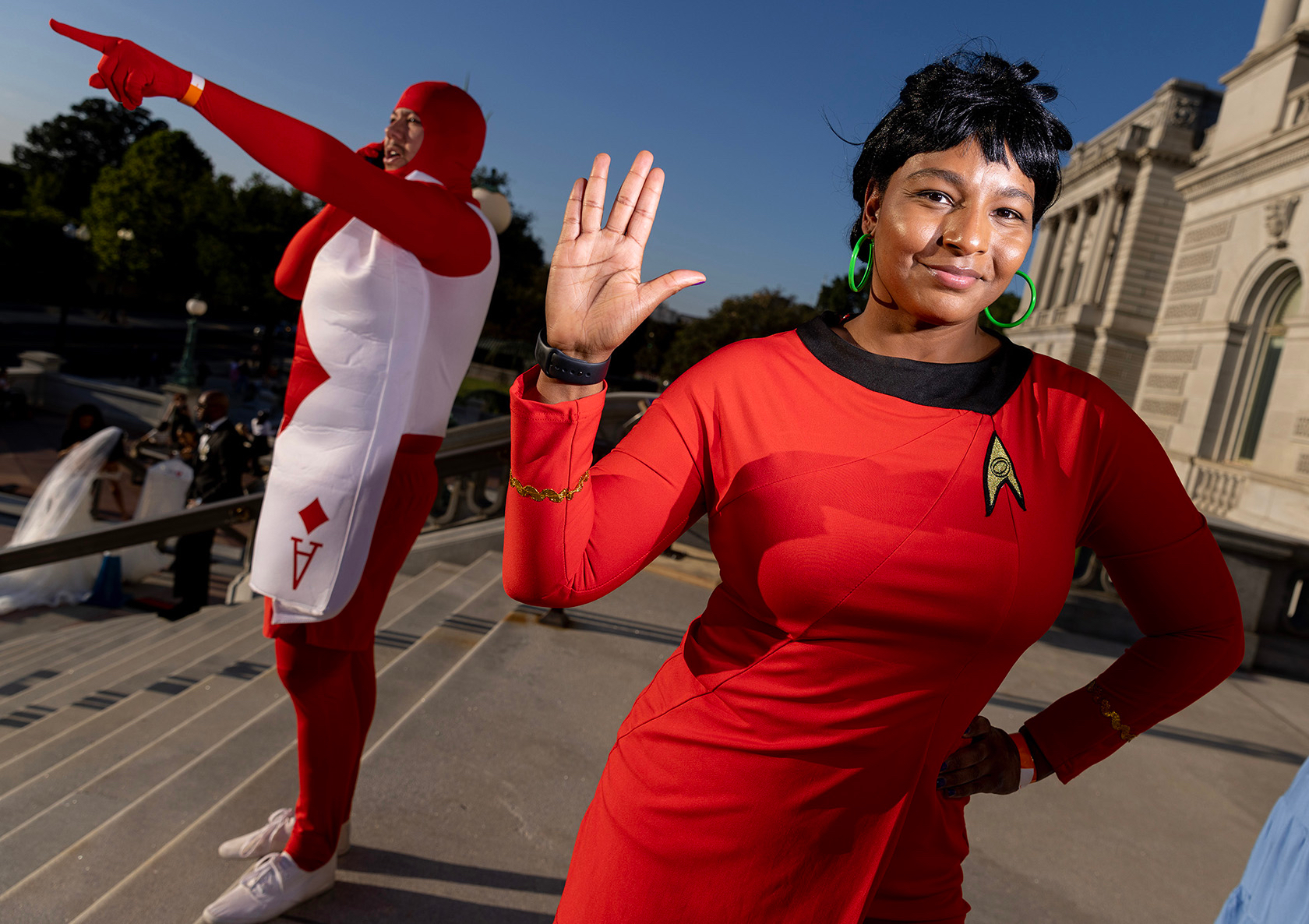 Take, for example, the photo above, a moment from the first Literary Costume Ball at the Library of Congress in September. Shauna Chase of Alexandria, Va. dressed as Uhura from Star Trek with around two thousand people in the Thomas Jefferson Building at the LOC who also dressed as their favorite characters. “When I was growing up my mother absolutely loved watching Star Trek… I thought it was weird but then I got into it myself and then I just fell in love with the character,” Chase told us.