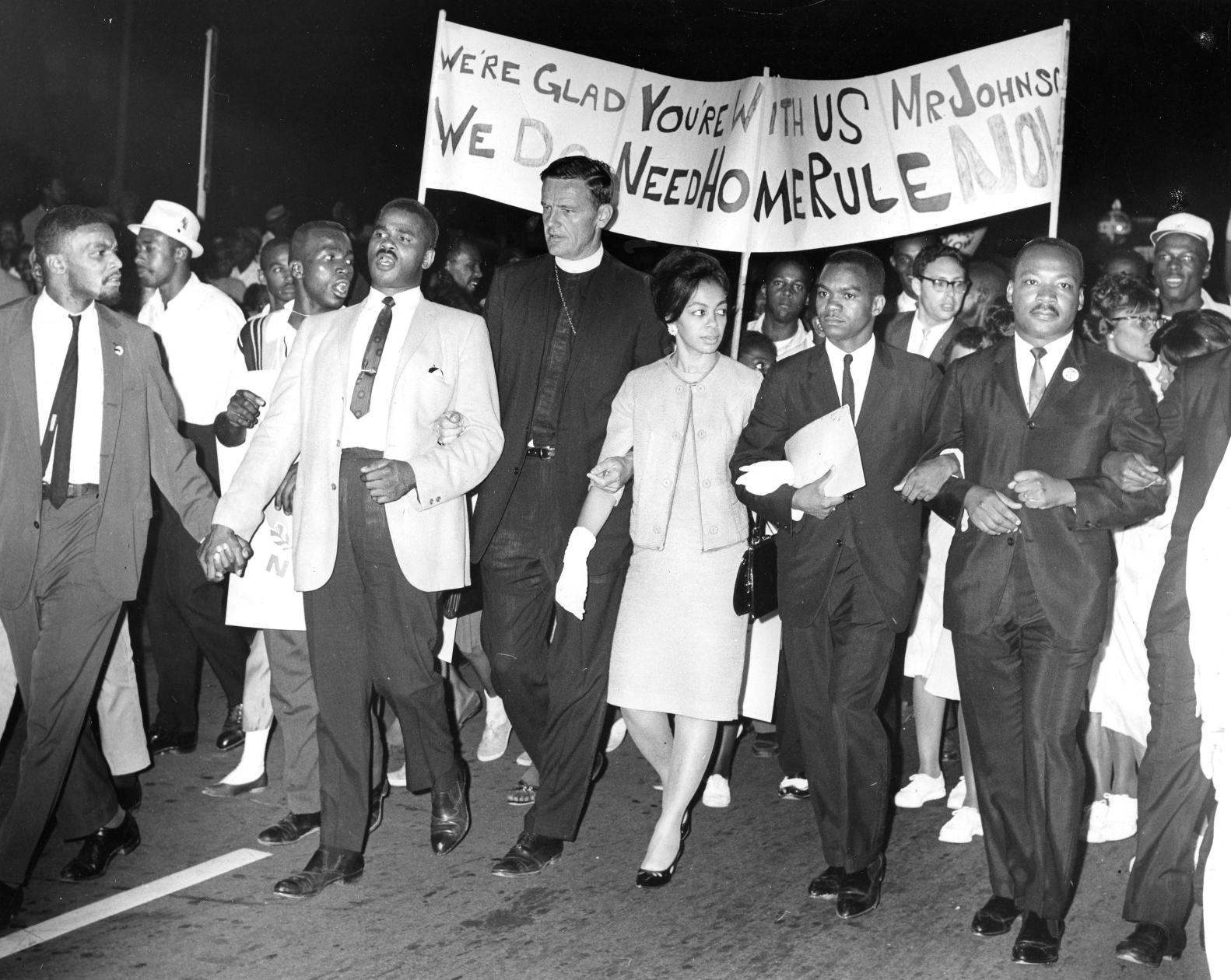 Fauntroy and King and others marched down 14th, right back to the White House. They were carrying a banner reading, “We’re glad you’re with us Mr. Johnson. We do need home rule now.”
