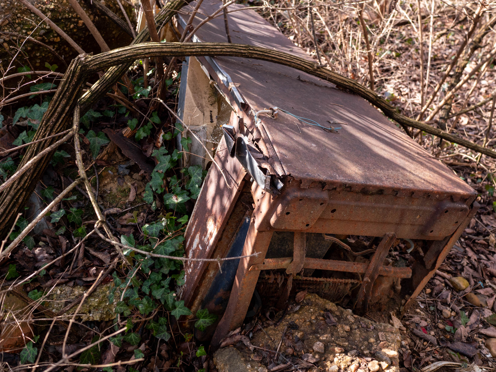 “I’m guessing that might be a refrigerator,” Cain says, pointing to a rusting metal box. “It’s hard to say after all these years.”