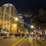 Helicopters flew so low over a crowd of protesters in downtown D.C. that the wind brushed debris, dirt, and glass into their faces.