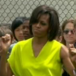 First Lady Michelle Obama stopped by Alice Deal Middle School in Tenleytown this afternoon to spread her message of fitness to the young people. And, of course, to get down.