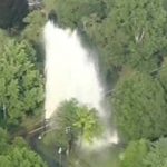 Image courtesy WTTG. An incredibly large water main break is currently shooting water 100 feet into the air in Potomac this evening. (We sure hope that the owner of that house in the bottom right corner there has some good flood insurance.) According to a NBCwashington.com report, a 24-inch water main broke in the 10800 block of Deep Glen Road earlier this afternoon. The Washington Suburban Sanitation Commission, fresh off fixing a cracked 96-inch main,…