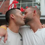 Gay rights supporters staged a smooching event yesterday at a “National Same Sex Kiss In Day” held at Chick-Fil-A restaurants across the country.