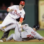 Garrett Mock tried to atone for his poor pitching performance by stretching this single into a double. It didn’t work. (AP Photo/Matt Slocum) Phillies 5, Nationals 0: It always seems like the teams who succeed in the playoffs have two big time starters. Well, the defending champs have a whole bunch of candidates in their rotation for that 1-2 punch — but Cliff Lee certainly made his case to be the number one guy…