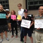 Dozens of cyclists gathered outside of WaPo’s headquarters to promote safe cycling and give Courtland Milloy a piece of their mind.