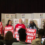 As part of an anti-violence campaign, organizers will be distributing red signs reading Thou Shalt Not Kill.