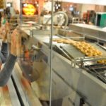 Someday, I’ll go back to school for industrial engineering so that I can design new food conveyor systems. These machines, in all their robotic food preparation and packaging spelndor, obviate the need for human labor. All that AND they can glaze Kevin H.’s Krispy Kremes! EXIF.