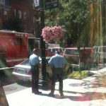 UPDATE (2:26 p.m.): Eddie Kim tells us “one side of the street” is now “open to cars” and that he was let out of his lockdown situation. Things sound like they’re calming down a bit; Eddie also notes that fire trucks are leaving the scene. D.C. Fire and EMS have tweeted that there is “no known threat.”