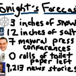 This week’s weather starts with freezing rain and ends with the possibility of snow, with a brief foray in the upper 60s in the middle. Obviously.