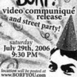 Everyone’s favorite (or least favorite) graffiti artist seems to be planning a comeback — lately we’ve noticed posters around U Street announcing a “video communique release and street party” on July 29. Sounds strange, and the website it directs people to, www.borfyou.com, doesn’t seem to work. Maybe it’s Borf, maybe it’s a prank, maybe it’s people who aren’t John Tsombikos, but in any case we’re curious — espectially with the “video communique” part. Are they…