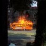 UPDATE: Thanks to Kiki Schneider for the new photo of the fire in action! Andrew Wiseman is the author of this post An orange Old Town Trolley bus burst into flames today just before 6 p.m. on Rhode Island Avenue, NW between 11th and 12th Streets. Before arriving on the scene, this DCist saw and smelled black smoke from outside the Mt. Vernon Square Metro at about 5:50 p.m. and 9th Street was hazy…