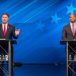 Gubernatorial candidates Dan Cox and Wes Moore debated at Maryland Public Television studios in Owings Mills Wednesday.