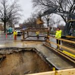 The cause of today’s sinkhole at 35th Place and Massachusetts Avenue SE has yet to be determined, but may have been caused by a failed utility cut.