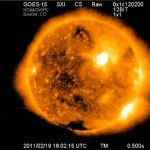 Photo by Space Weather Prediction Center The Earth is safe, for now. Although our little solar heat-lamp didn’t go ‘nova and swallow up in a fiery tsunami, the last disruptions from this past week’s solar flare will be dissipating this weekend. NOAA’s Space Weather Prediction Center predicts that as result of the flare, also known as the snicker-inducing coronal mass ejections, solar winds could cause shortwave disruptions to communications and power grids. On the…