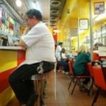 Much like yesterday’s photo, this one struck us as being that perfect capture of people at home in their environments. Flickr user The Skipping Hippy took this photo of Harry the Manager in his domain at Chick & Ruth’s Delly in Annapolis, MD. Even better, the bright, cheery colors and the view down the length of the diner add a great feel to it. EXIF. The Skipping Hippy was at the DCist Exposed opening…