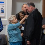 “She pinned my ‘you “voted’ sticker on after I completed my ballot,” Kaine said.