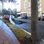 Car Falls In Hole After Water Main Break